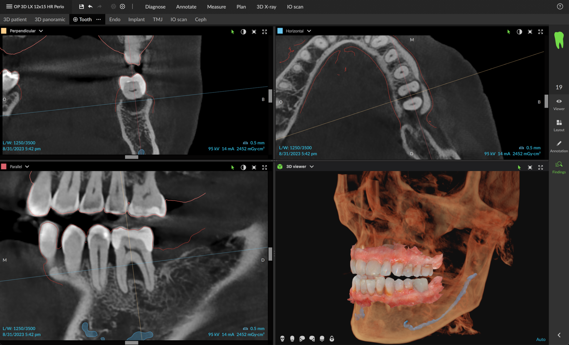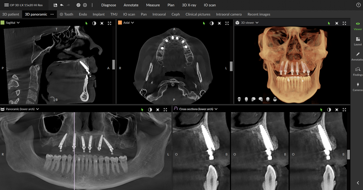 DEXIS OP 3D LX ir moderns ekstraorāls izmeklēšanas sistēma, kas vienā sistēmā apvieno panorāmas, cefalometriskos un augstas izšķirtspējas 3D (CBCT) skenējumus. Ar redzes lauka opcijām no 5×5 cm līdz 15×20 cm (viena no lielākajām savā klasē) tā atbalsta visu, sākot no viena zoba endodontijas līdz pilnīgai sejas un žokļu un elpceļu izmeklēšanai. AI-aprīkotā DTX Studio™ Clinic integrācija optimizē darba plūsmas, bet modernā attēlu apstrāde, tostarp metāla artefaktu samazināšana un implantu kontrasta uzlabošana, nodrošina augstu kvalitāti un diagnostikas efektivitāti. OP 3D LX ir pilnībā modernizējams un pielāgojas mainīgajām klīniskajām vajadzībām.